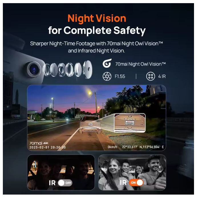 70mai 4k Dash Cam T800e|70mai T800e|4K Resolution: Capture every detail with 4K clarity, ensuring your footage is sharp and clear. 3-Channel Recording: Record from front, rear, and interior with a 3-channel setup for comprehensive coverage.