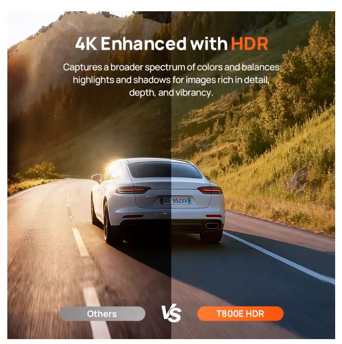 70mai 4k Dash Cam T800e|70mai T800e|4K Resolution: Capture every detail with 4K clarity, ensuring your footage is sharp and clear.