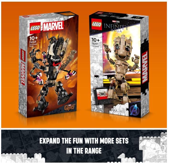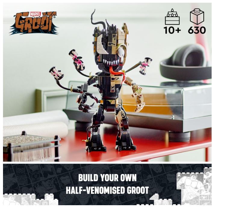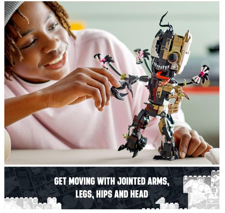 - Build, play and display – Kids construct their own movable, Venomized Groot figure, then add extra bricks to alter the appearance as Venom gradually takes over