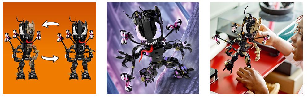 - Venomized Groot transformation – LEGO Marvel Venomized Groot (76249) puts reconfigurable fun into the hands of Marvel fans as they Venomize Groot more and more, brick by brick