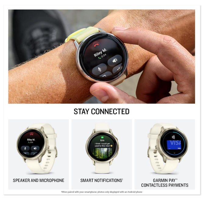 - Log custom or preset daily behaviors — such as caffeine and alcohol intake — and view reports in the Garmin Connect smartphone app on how lifestyle choices may impact your sleep, stress and HRV to help you make more health-conscious decisions (device data presented is intended to be a close estimation of metrics tracked)