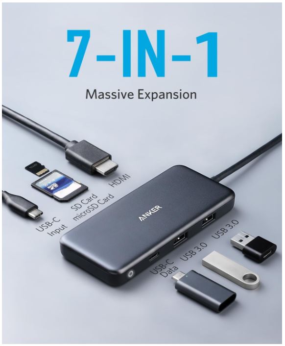Anker 341 USB-C Hub (7-in-1): The USB, HDMI, SD Card, and Power Delivery Charging Station