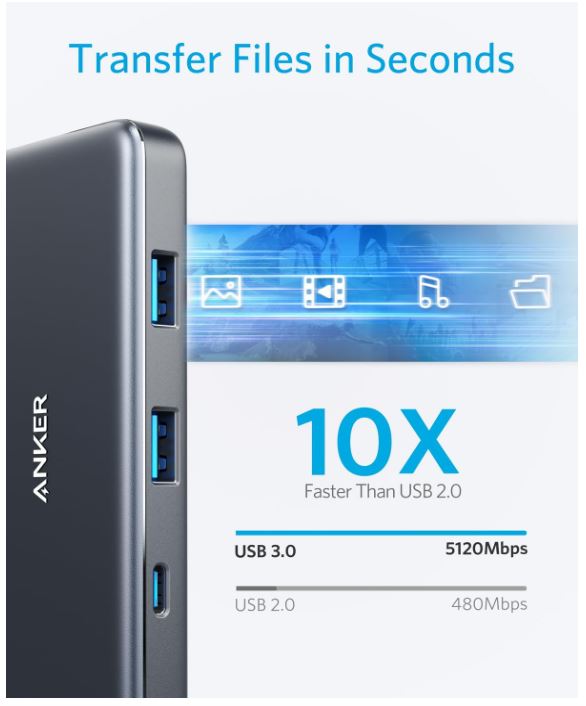 Transfer Files in Seconds: Transfer movies, photos, and music at speeds up to 5 Gbps via the USB-C data port and dual USB-A ports.