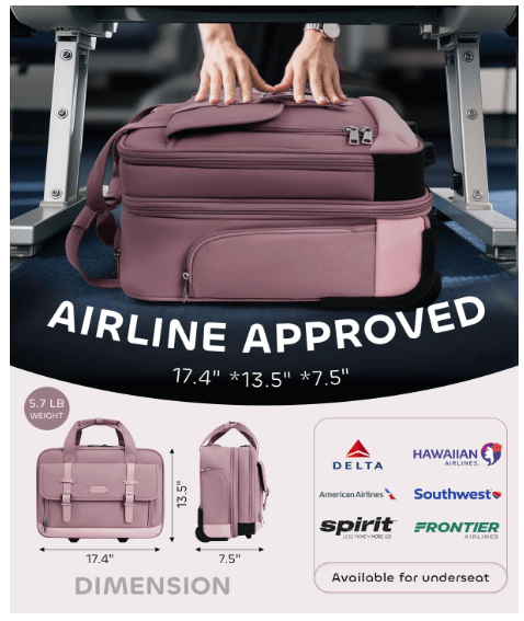 • 【Good Travel Companion】This underseat carry on luggage with wheels has a luggage strap on the back for easy transportation on top of luggage. The bottom has carry handles designed to make it easy to lift up and down or put in your suitcase. The large capacity organizer design can meet the needs of business trips/business trips/short trips/day trips/overnight trips
