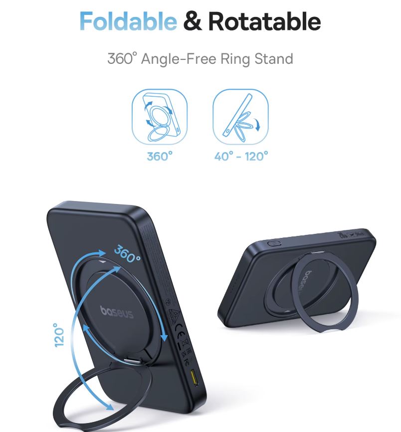 Magnetic Power Bank With 360° Kickstand Foldable and Rotatable
