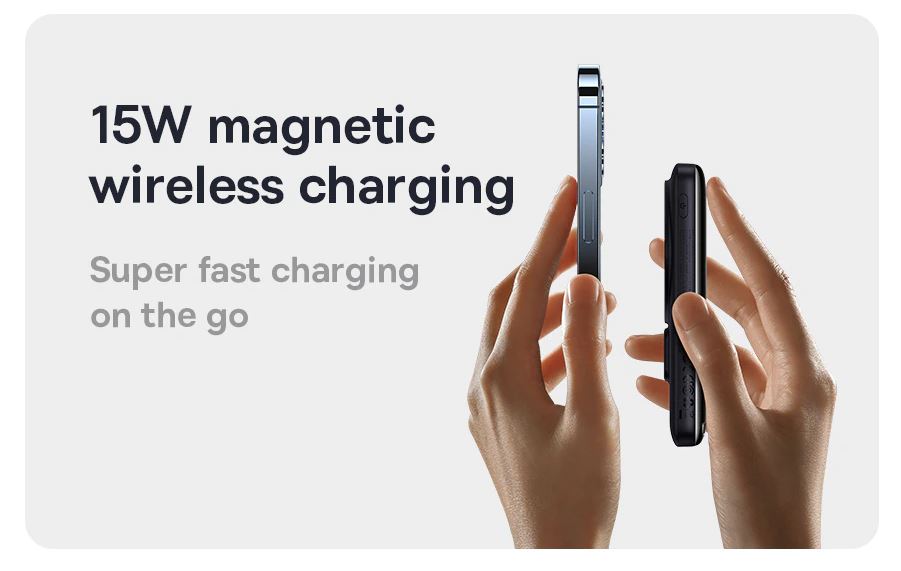 מטען נייד מגנטי Baseus כולל טעינה אלחוטית  הרשמה לעדכונים