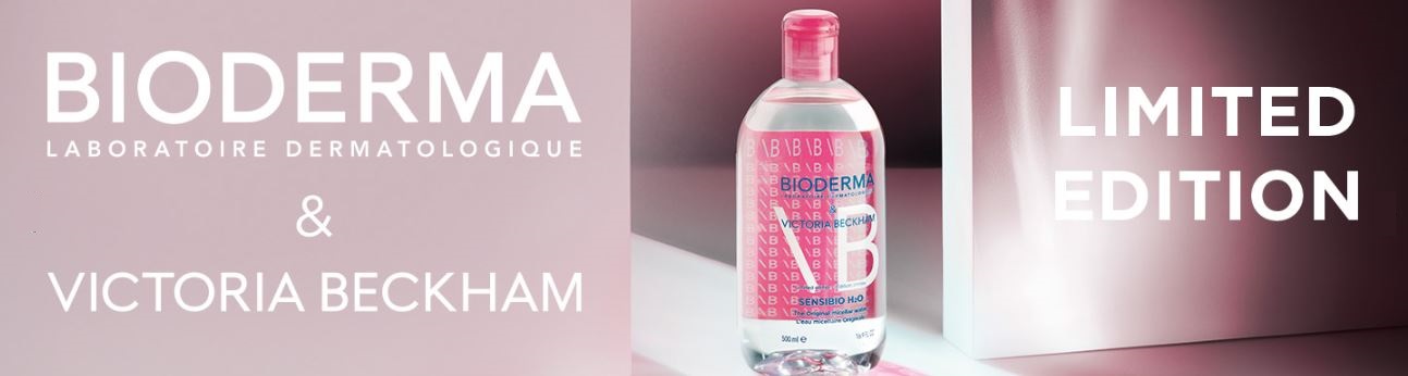 מי ניקוי מיסלרי של Bioderma Sensibio H2O במהדורה מוגבלת שעוצבה על ידי ויקטוריה בקהאם.