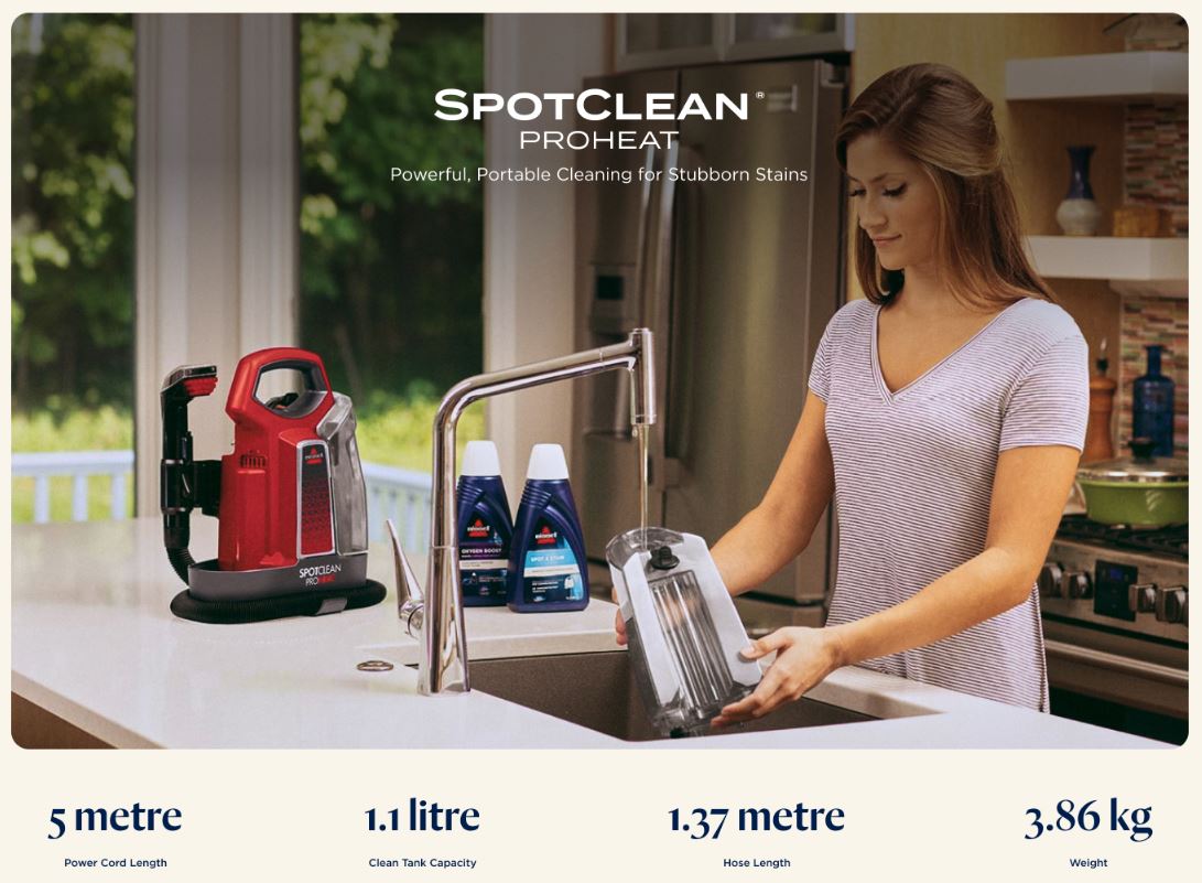 - PRACTICAL AND EFFICIENT UPHOLSTERY CLEANER MACHINE: The SpotClean ProHeat has a 1.5 meter hose for hard-to-reach areas in your home and auto, ideal as car seat cleaner.