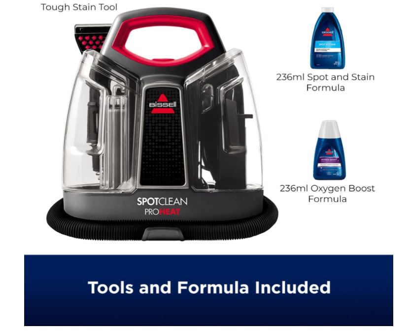 - EFFECTIVE STAIN REMOVER: The BISSELL SpotClean ProHeat carpet cleaner with 330W motor and Heatwave technology removes stubborn dirt and stains making it Ideal for home and car as spot cleaner.