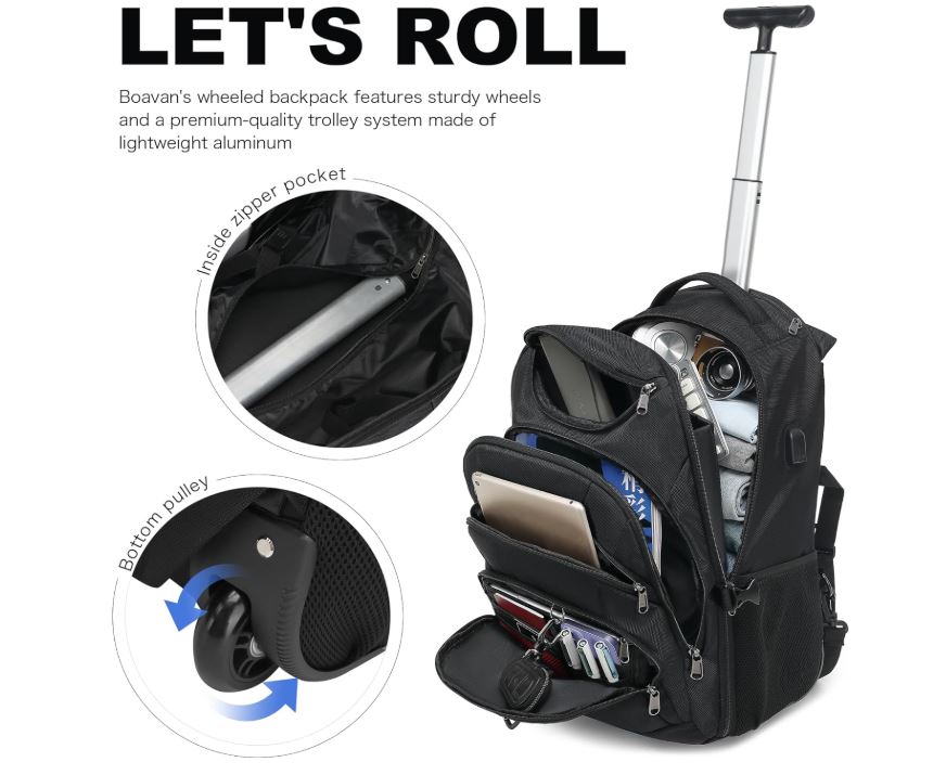 תיק גב על גלגלים מבית Boavan, תיאור מלא