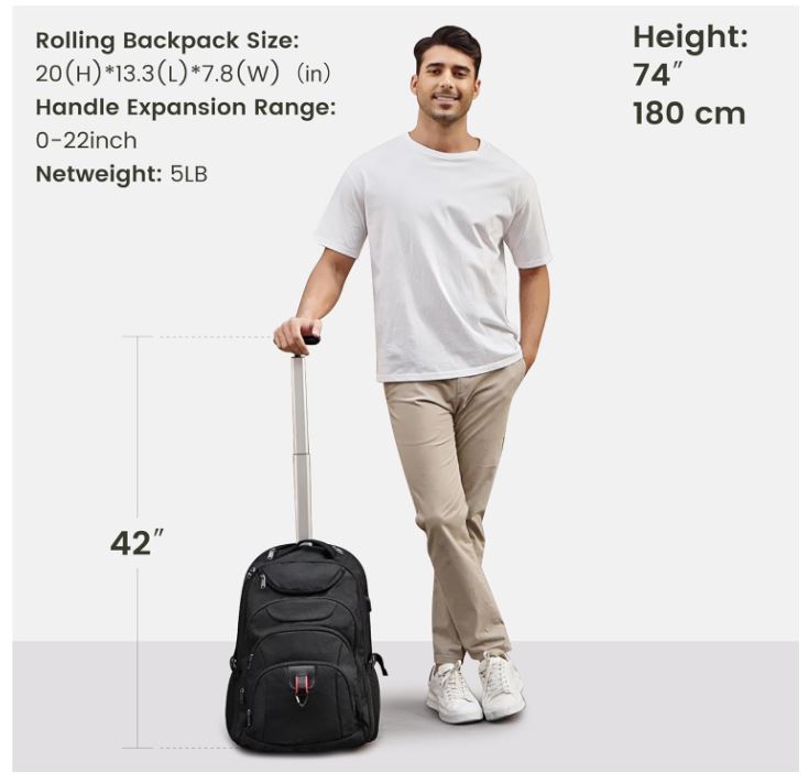 - TRAVEL COMPANION: This backpack with wheels is convenient for security checks, it is designed to meet most airline carry-on baggage requirements and fits easily into the overhead rack. Its multi-purpose design provides convenience for student parties and business travelers, this classic multi-functional backpack is the best choice for students and travelers for roller backpacks, college student backpacks with wheels, and business rolling backpacks