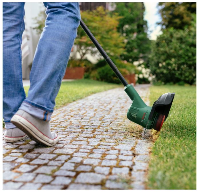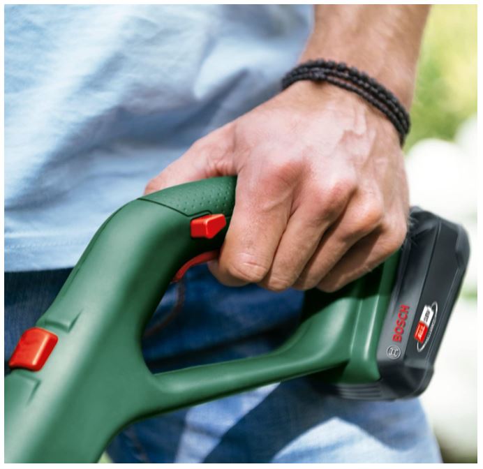- Continuous cutting: uninterrupted cutting with the Bosch battery trimmer by tracking the thread every time the switch is released