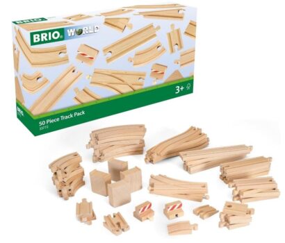 Introducing the 50-Piece Special Track Pack from BRIO World, a timeless masterpiece celebrating over six decades of imaginative indoor play. Crafted with care from Forest Stewardship Council-certified wood, this exciting 50-piece wooden train track accessory promises durability and high quality while standing as a testament to responsible forestry and sustainability practices. Your train engineer will delight in expanding their wooden railway empire with these additional tracks, switches, and accessories that will seamlessly fit into their existing sets. Unlimited railway empires await your boys and girls ages 3-4, 5-6, and older.