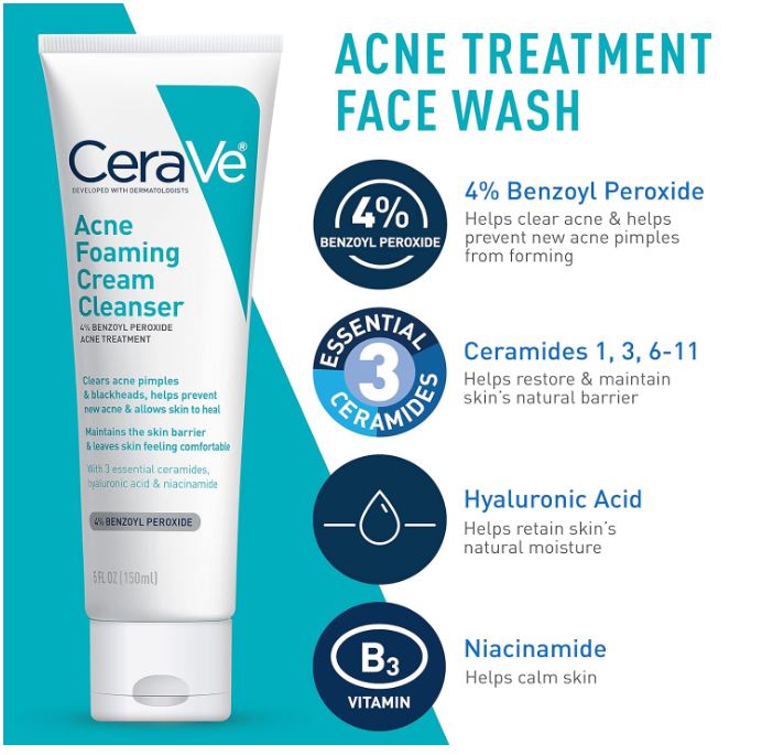- [ 4% BENZOYL PEROXIDE FACE WASH ] This hydrating acne wash helps clear pimples, whiteheads & blackheads, while preventing new acne from forming. Formulated with hyaluronic acid & niacinamide to help calm & maintain the skin’s natural moisture barrier