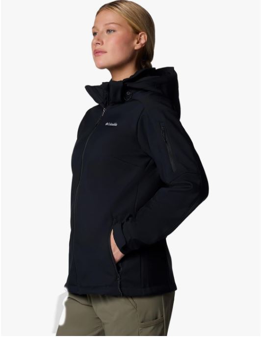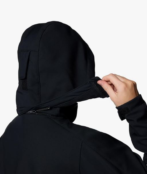 - The hooded softshell jacket blocks wind, splashes and stains with a breathable, durable fabric, so you can stay warm and protected on cold, windy days