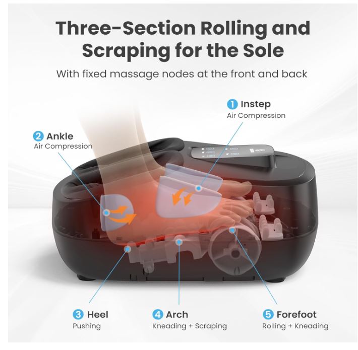 המכשיר משלב ראשי לישה מתקדמים בשיטת שיאצו עם לחץ אוויר,