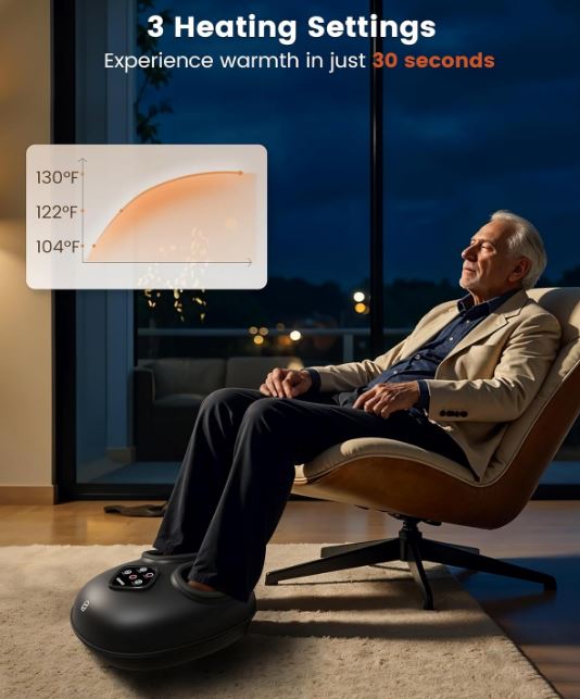 - 【Adjustable Heat & Intensity for Personalized Comfort】-Customize every session with three intensity levels and optional soothing heat. This foot massager with heat enhances circulation and relaxation without overheating, providing safe, consistent warmth ideal for daily recovery.