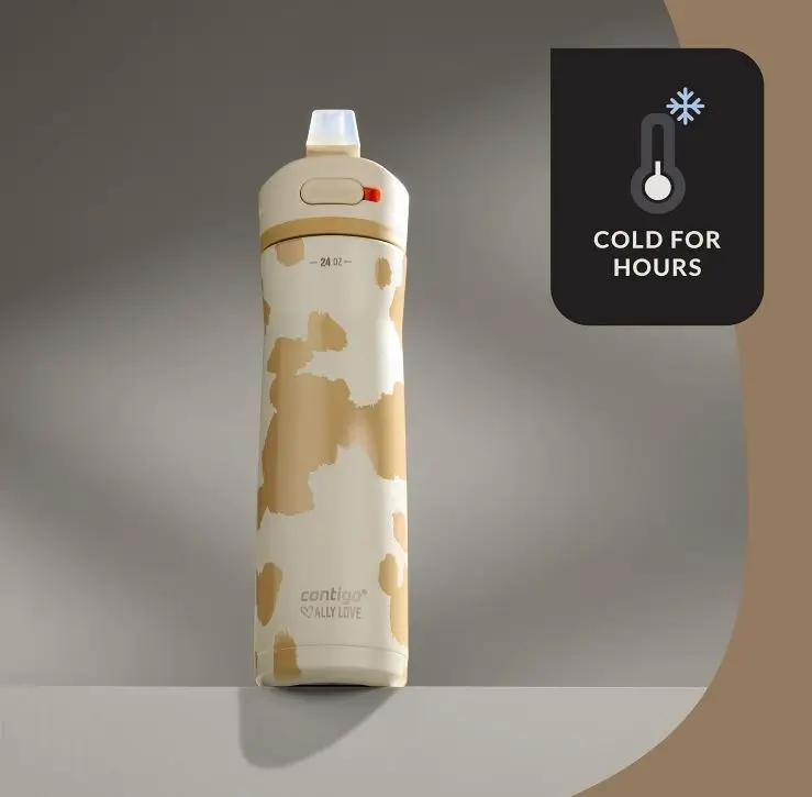 Contigo x Ally Love Stainless Steel Vacuum-Insulated Water Bottle with AUTOSPOUT Easy-Clean Lid Leak-proof Drinking Keeps drinks cold for 24 hours BPA-Free 24oz. Ashland Chill 2.0 Oatmilk