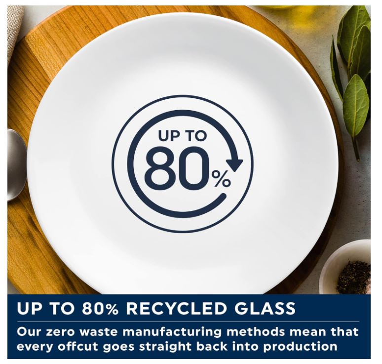 - TOUGH ENOUGH FOR ALL KITCHEN TASKS: Safe to use in the dishwasher, microwave, fridge, freezer, and preheated oven (up to 175 C)..THE SUSTAINABLE CHOICE: Made of 80% pre-consumer recycled glass that’s all natural and so strong you’ll never need to replace them. And our zero waste manufacturing methods mean that every offcut goes straight back into production..MADE IN THE USA: Corelle Vitrelle glass has been crafted in Corning, NY since 1970
