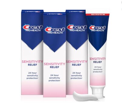 Crest Pro-Health Sensitivity Relief Toothpaste delivers fast relief from painful tooth sensitivity while strengthening enamel and restoring gum health. Formulated with advanced stannous fluoride, it creates a protective shield that blocks sensitivity triggers from food and drinks, providing lasting relief within days of use.* Healthy gums are the foundation of a healthy mouth. That’s why Crest Pro-Health Sensitivity Relief Toothpaste is designed not only to soothe sensitivity but also to fight harmful bacteria below the gumline.