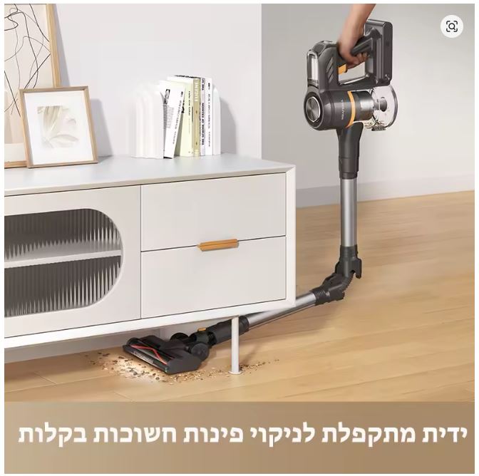 - מוט גמיש: המוט הייחודי של השואב מתקפל בזווית של 90 מעלות, ומאפשר גישה קלה ונוחה מתחת לרהיטים, ספות ומיטות מבלי שתצטרכו להתכופף.