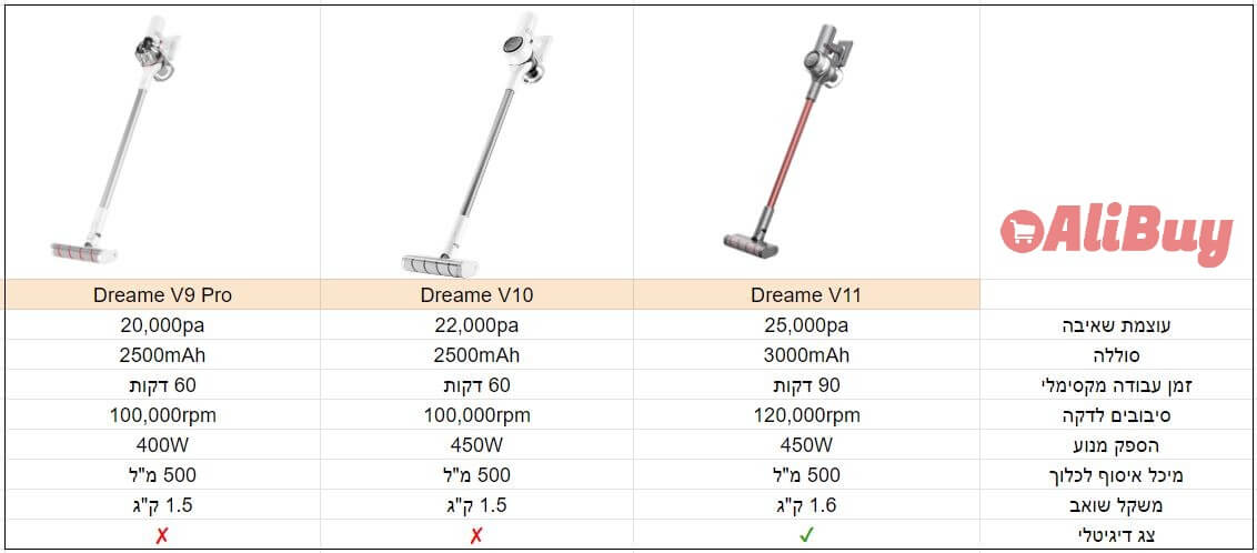 השוואה בין דגמים Dreame V9 Pro Vs V10 V V11