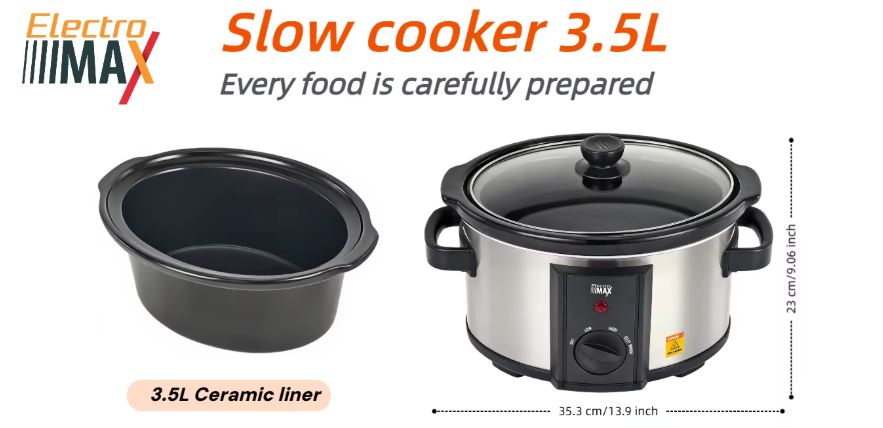 Electro Max 3.5L/6.5L Slow Cooker – 180W/315W | Stainless Steel & Ceramic Pot | 4 Cooking Modes | Zomet Certified for Shabbat Use