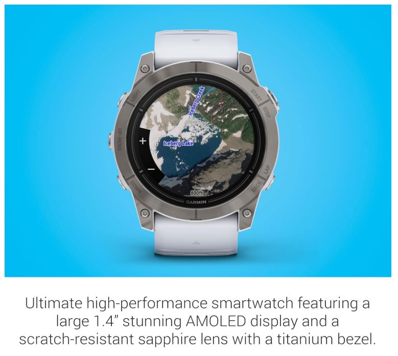- Ultimate high-performance smartwatch features a large 1.4” always-on, stunning AMOLED display and a scratch-resistant sapphire lens with a titanium bezel designed for larger wrists