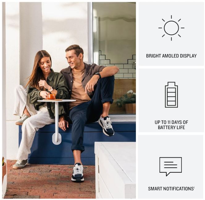 • Designed with a bright AMOLED display, get a more complete picture of your health, thanks to battery life of up to 11 days in smartwatch mode