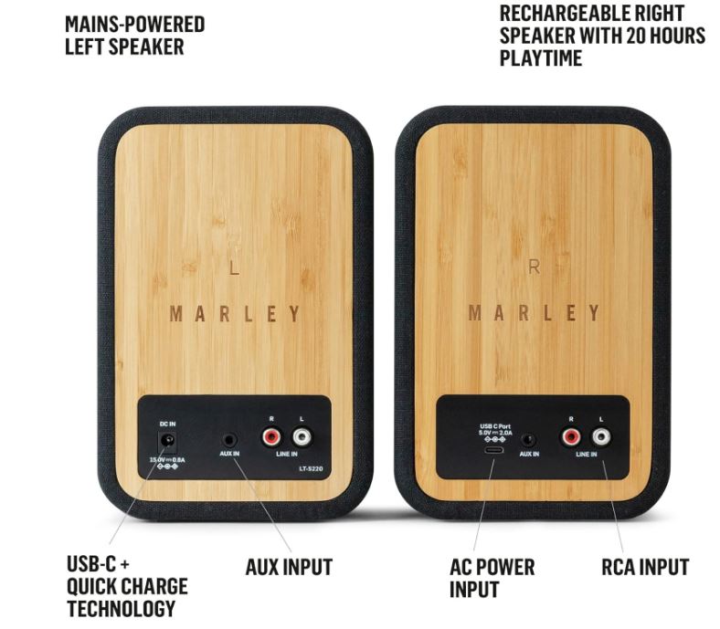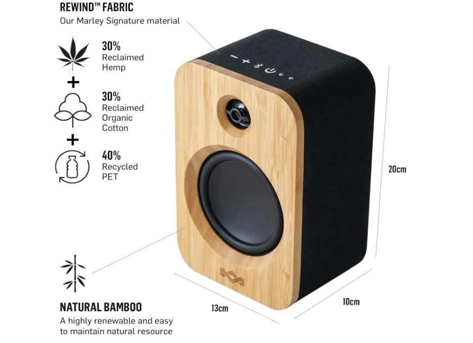 - SUSTAINABLY CRAFTED: These active bookshelf speakers are made from responsibly sourced bamboo and REWIND fabric, a blend of recycled materials. Combining natural materials with a modern design, this Bluetooth speaker setup is perfect for any space!SUSTAINABLY CRAFTED: These active bookshelf speakers are made from responsibly sourced bamboo and REWIND fabric, a blend of recycled materials. Combining natural materials with a modern design, this Bluetooth speaker setup is perfect for any space!