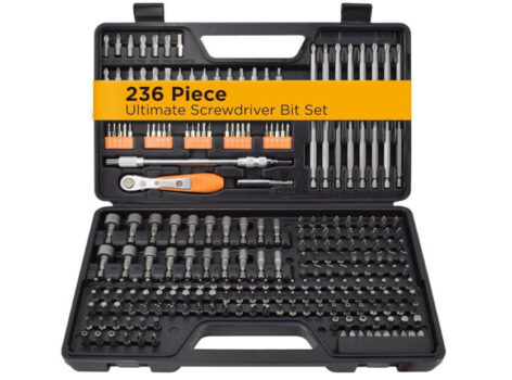- The Ultimate Set: 236 pieces including Nut Drivers, Security Bits, Torx, Slotted, Phillips, Square, Pozi, Hex, Socket, microbits, and other specialty bits in commonly used sizes. Also includes Magnetic Bit Holder, Quick-Change Adapter for fast and easy switching between sizes, a ratchet wrench, and a flexible shaft bit holder for working in hand to reach spaces!