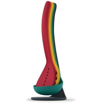 Comprising 5 essential kitchen tools, this innovative design now comes with a separate storage stand which holds any utensils that aren’t in use. When nested together, each tool is held securely in place by small magnets in the handles.