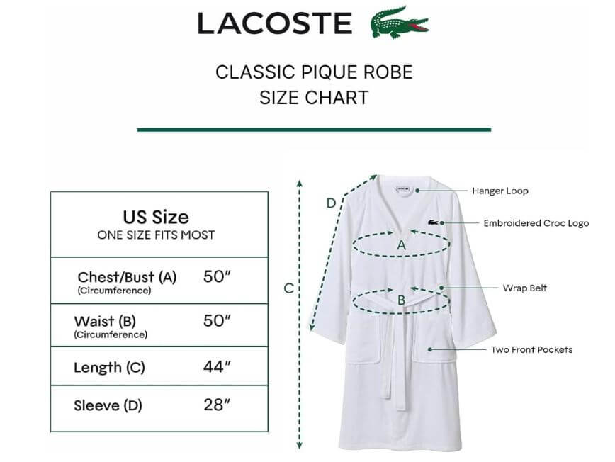 - SUPER SOFT AND ABSORBENT – Lacoste Classic Pique Robes are super absorbent and leave you feeling content and dry after a bath or shower.