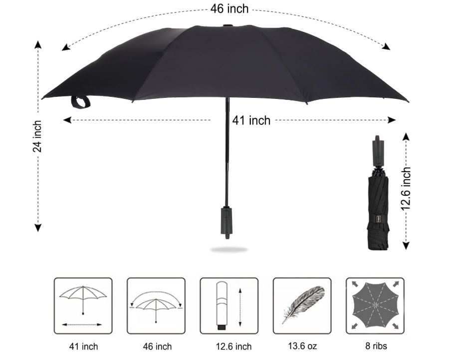 - COMPACT, PORTABLE AND EASY CARRYING: This is an upgrade design of the longer reverse folding umbrella, light weight and more easy carry. This reverse umbrella is easy to store in your car, your briefcases, backpacks, tavel bags etc. It is perfect for travel, business, camping, fishing, and daily use. Suitable for men and ladies.