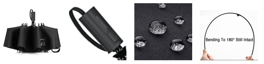 This windproof umbrella is flexiable enough to withstand powerful wind without turning inside out.