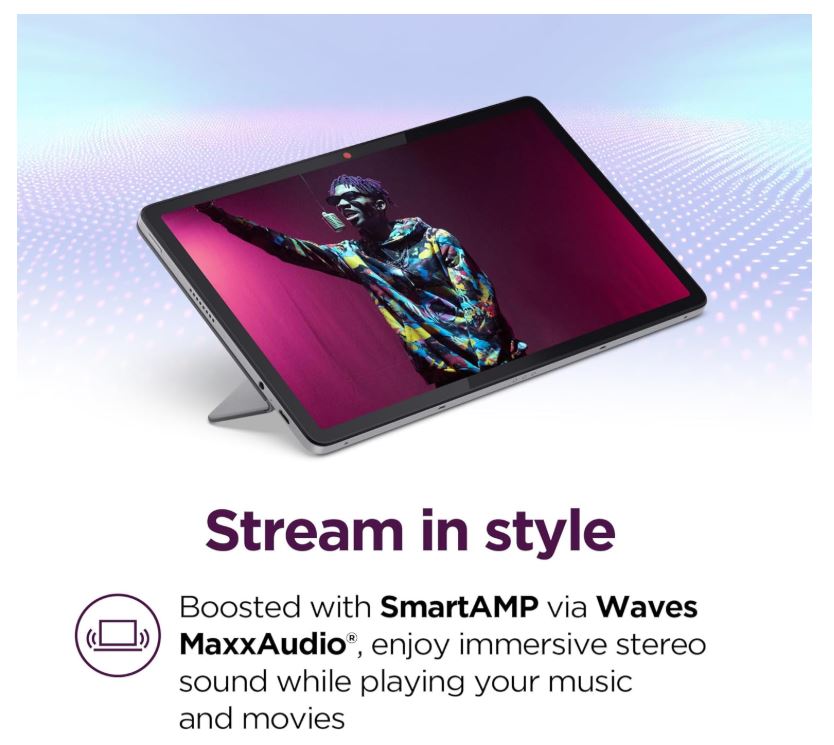 Elevate your on-the-go experience with the Lenovo Chromebook Duet. Weighing just over a pound and super slim, it’s as easy to hold as a paperback. Shift from laptop to portrait mode with the versatile kickstand. Fast Boot on ChromeOS keeps you moving fast by powering on in under 10 seconds. It’s not just a device, but a lifestyle transformer that’s powered by the MediaTek Kompanio 838 processor’s on-device AI. The 10.95″ display sports narrow bezels for maximum screen as you binge-watch YouTube videos or jam with booming clarity via SmartAMP with Waves MaxxAudio®.