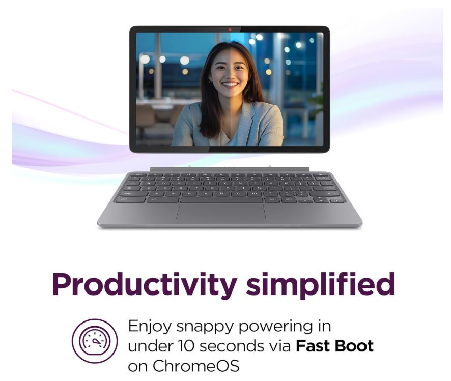 - PRODUCTIVITY SIMPLIFIED – The MediaTek Kompanio 838 processor delivers speedy performance, seamless on-device AI processing, and snappy powering in under 10 seconds via Fast Boot on ChromeOS.