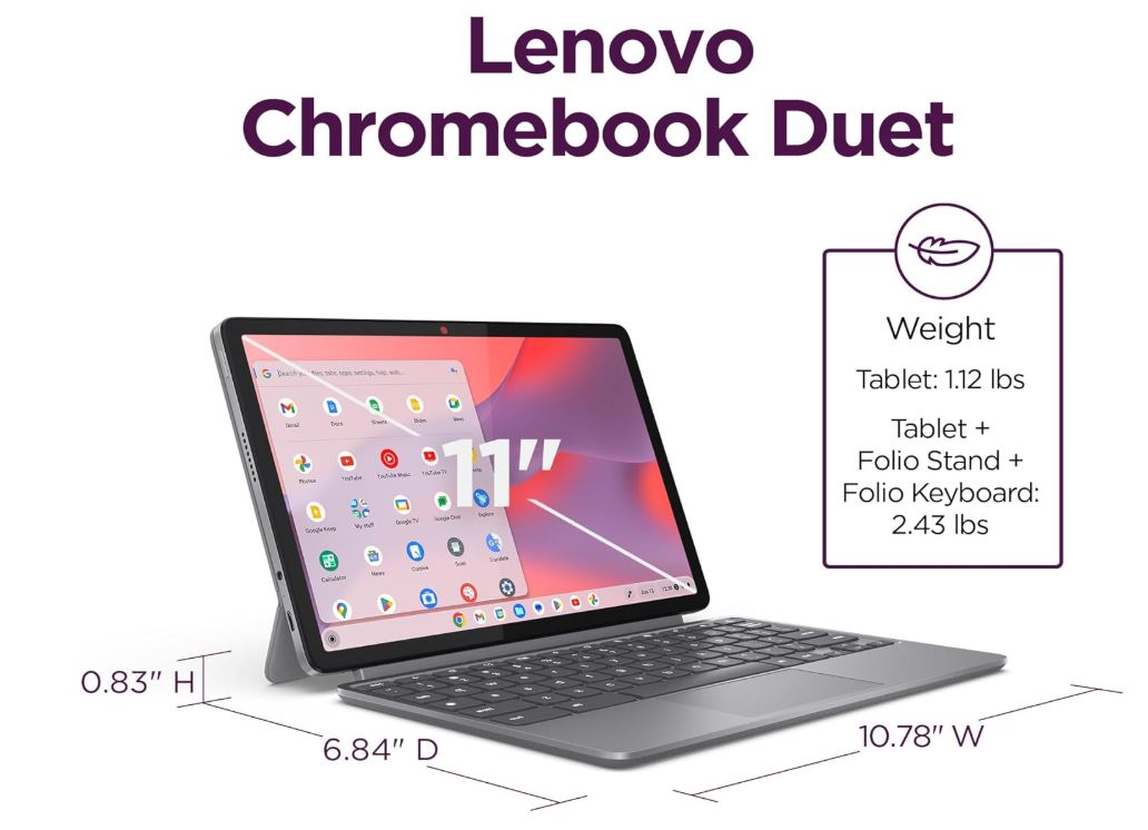 - ALWAYS READY TO GO – With its perfectly portable size, folio keyboard, and all-day battery life, the lightweight Lenovo Chromebook Duet is ready for anything you throw at it.