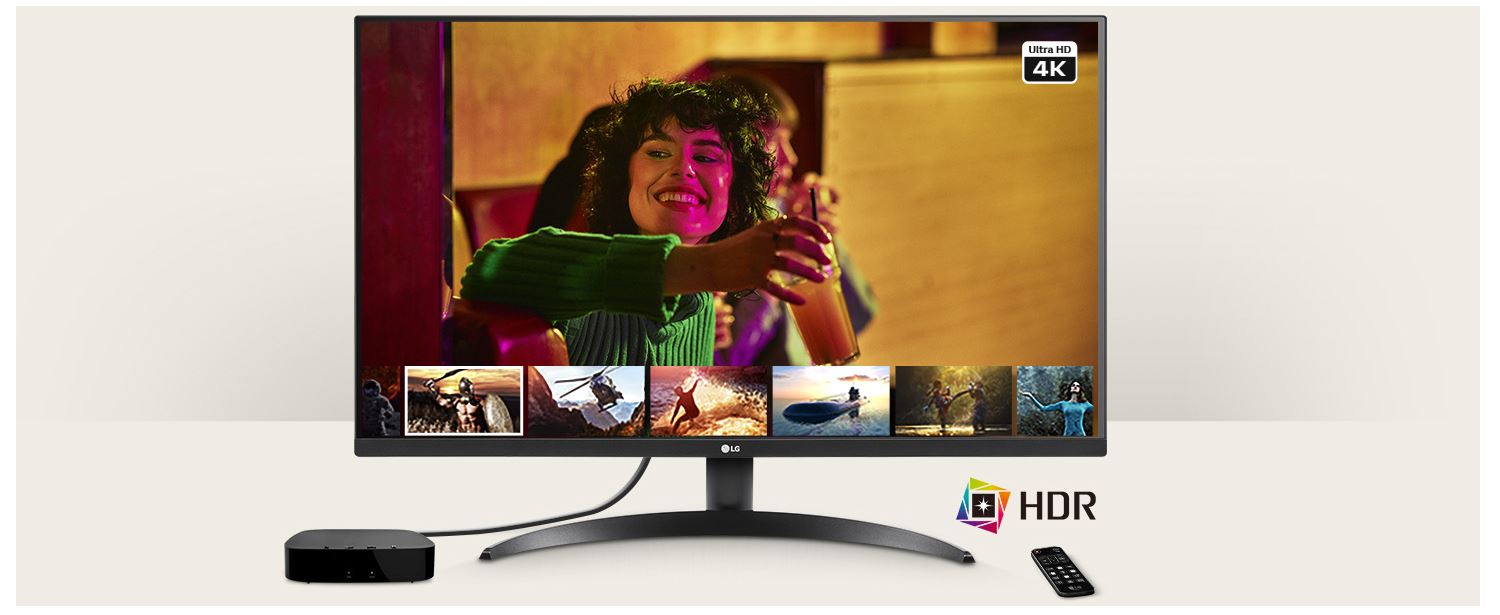 The 32-inch UHD 4K (3840 x 2160) display reproduces clear images and vibrant colors with up to 90% DCI-P3 color gamut expression . Experience dramatic visual immersion with all your favorite shows, movies, sports and games.