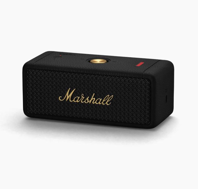 Experience powerful portable sound with the Emberton II speaker. Two 2” full range drivers and two passive radiators bring you the heavy Marshall sound, delivering 360° audio coverage through True Stereophonic technology.