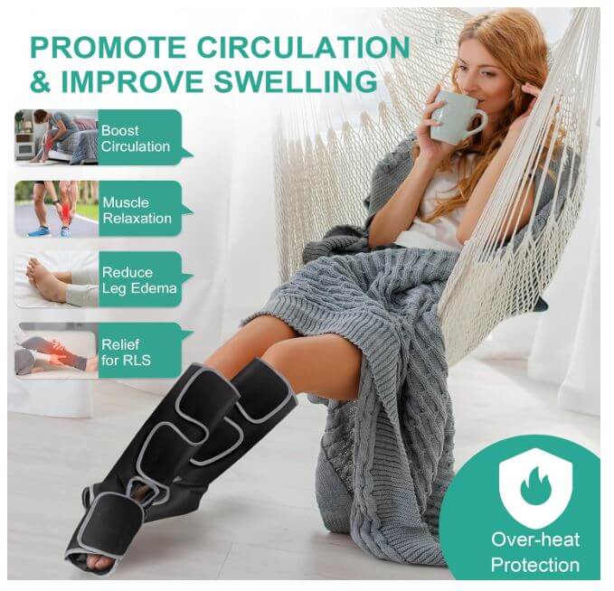 - [3 Massage Modes and 3 Intensities] Unlike traditional massage techniques, this leg and foot massager replicates squeezing massage by compressing treated areas with cyclic air pressure. Inside, there are 2×2 airbags with specific massage settings to promote comfort around your calves and feet. Three modes and three intensities can be combined to provide you with a customized massage experience that relaxes muscles and relieve fatigue