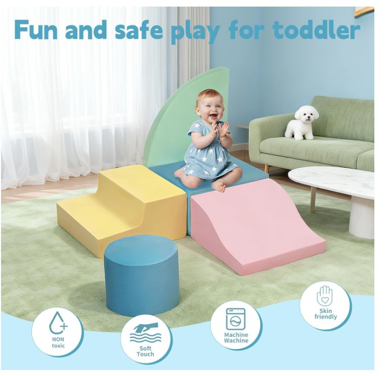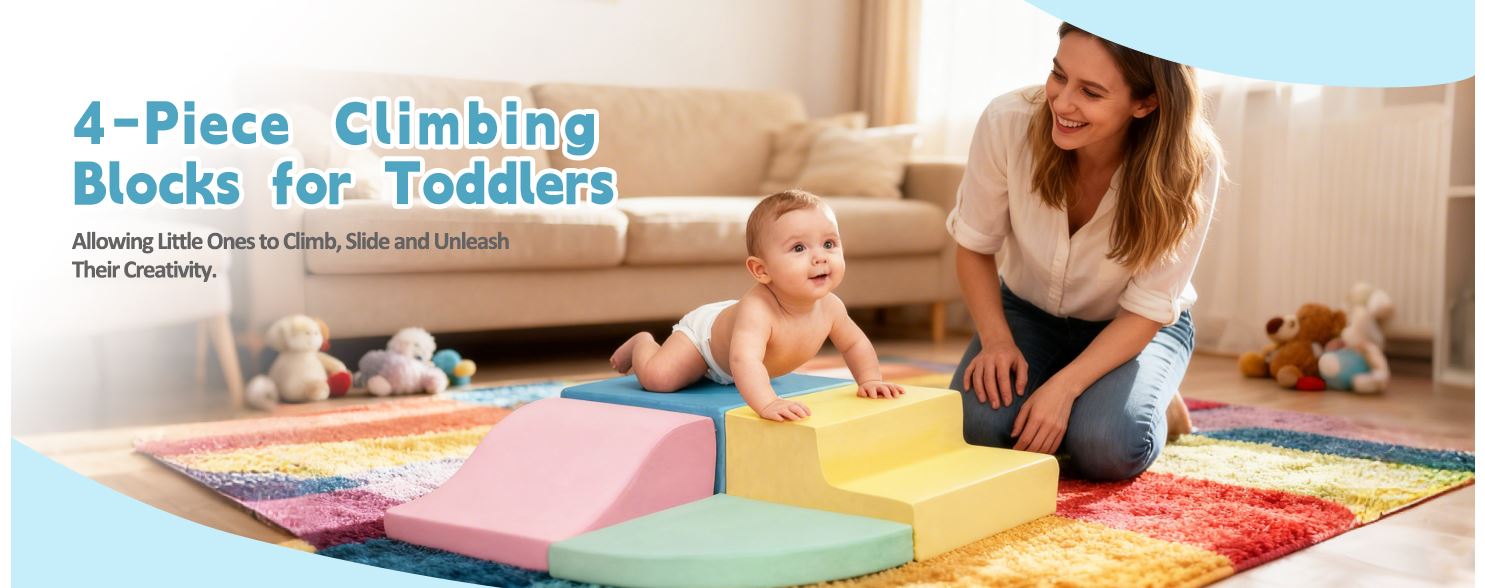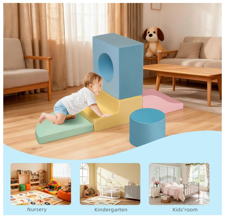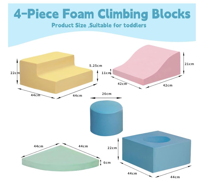 • Rebound foam: Theclimbing blocks for toddlers 1-3 are vacuum-packed and will fully recover their shape within 24 hours after unpacking. They are resistant to deformation and won’t break even under adult pressure