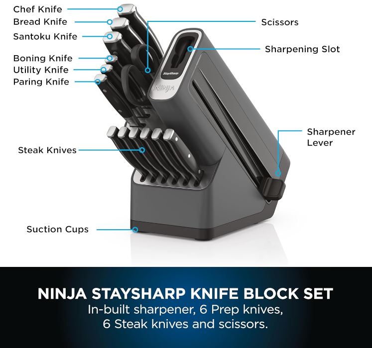 סט 14 חלקים Ninja Foodi StaySharp בלוק סכינים כולל משחיז מובנה