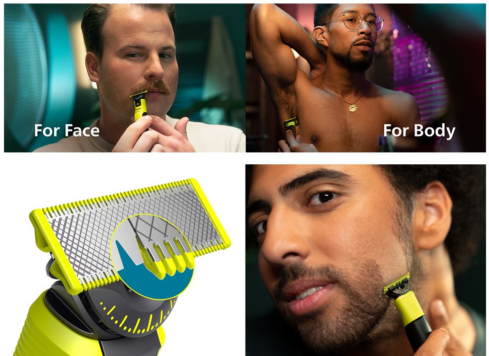 The Philips Norelco OneBlade 360 with Connectivity Face + Body is a revolutionary new hybrid styler that can trim, shave and create clean lines and edges, on any length of hair. This is the shaver, groomer and beard trimmer men can really count on! Forget about using multiple steps and tools. OneBlade shaver and trimmer for men does it all. Its shaving technology features a fast-moving cutter that moves up to 12,000x per minute, powering through any length of hair.