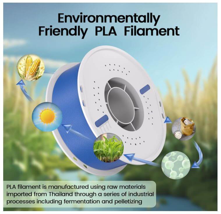 - 【Sustainable Thai Materials】PLA filament made from sustainably sourced Thai raw materials—produced through eco-friendly fermentation and granulation,offering a carbon-neutral alternative to traditional plastics