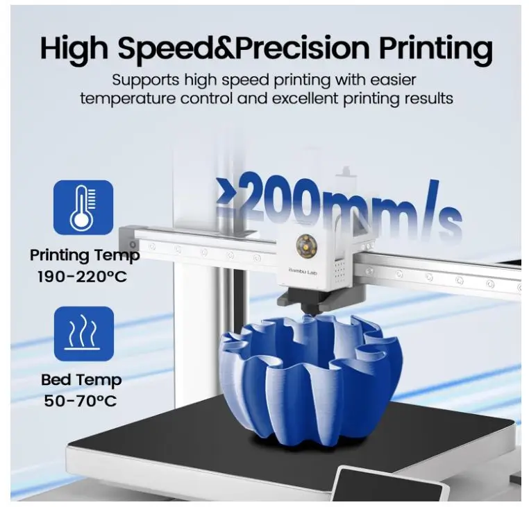 - 【Recommended PLA Settings】Supports high-speed printing with precise temperature control. For optimal results, recommend printing at 190–220°C (nozzle) and 50–70°C (build plate temperature)