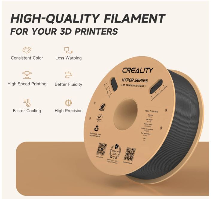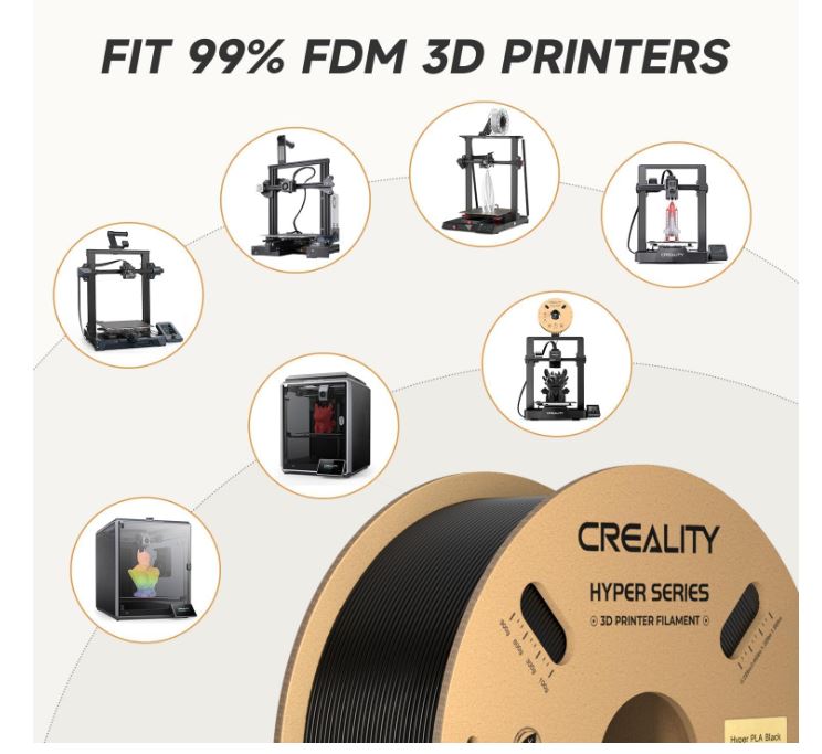 Easy to use and Universal compatibility Unlock your creativity with our Official Creality Hyper PLA Filament 1.75mm! With improved toughness and fluidity, our PLA offers wide temperature and speed ranges to suit all of your innovative needs. Universal compatibility with most of the common 1.75mm 3D printers on the market, such as Creality 3D Printers/Ender 3D Printers,Fit for AnycubicPrinter/Fit for ElegooPrinter/Bambu/Ankermake/Prusa/Flashforge/Monoprice/FLSUN/Artillery/Qidi 3D Printers ETC.