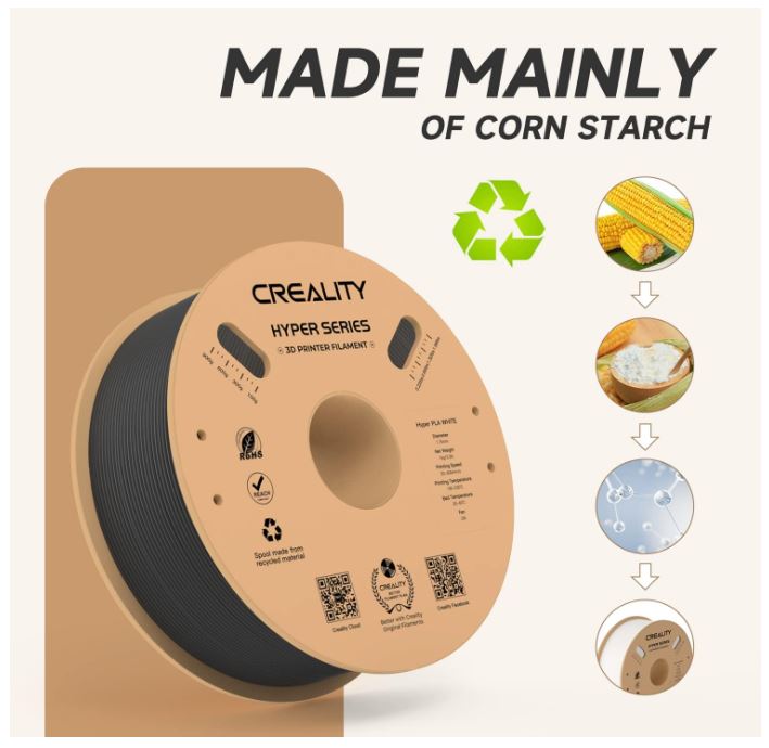 High-quality and Healthy Materia Sourcing raw materials globally and strict quality control deliver excellent printing performance and printing results. Official Creality Hyper PLA Filament 1.75mm are made from eco-friendly materials that are free from harmful toxins and odors, ensuring that you can print with confidence and without any risks to your health. Eco-friendly Packaging, Reducing Carbon Emissions.