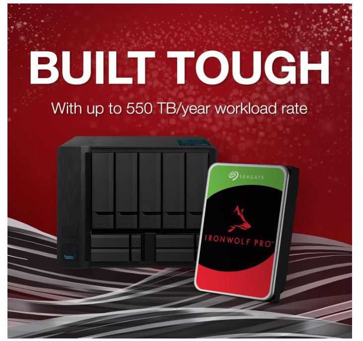IronWolf® Pro drives are engineered to deliver 24×7 performance, reliability, and dependability in multi-bay, multi-user commercial and enterprise RAID storage solutions. Built tough with conventional magnetic recording (CMR) technology, rotational vibration sensors, and AgileArray™ firmware for consistent, best-in-class performance and total cost of ownership (TCO). Peace of mind with five-year limited warranty, complimentary three-year Rescue Data Recovery Services, and IronWolf Health Management.