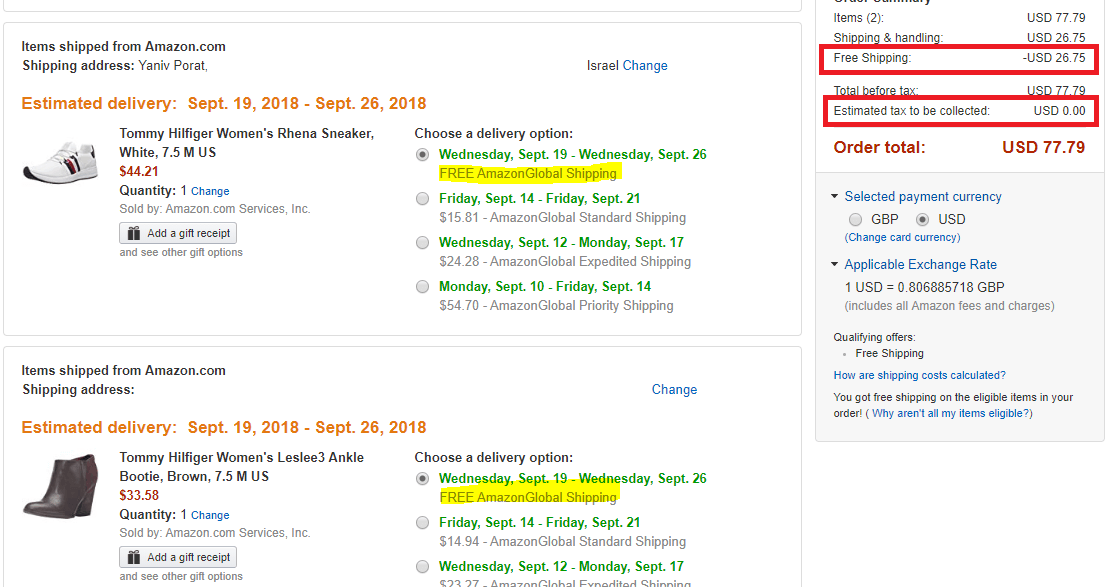 אבל אם תרצו להזמין מספר הזמנות מאמזון בהפרש של פחות מ 72 שעות ניתן פשוט לפצל את ההזמנה